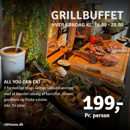 ALL YOU CAN EAT 3 slags kød udskæringer med kartofler, sauce, garniture, salat og isbar