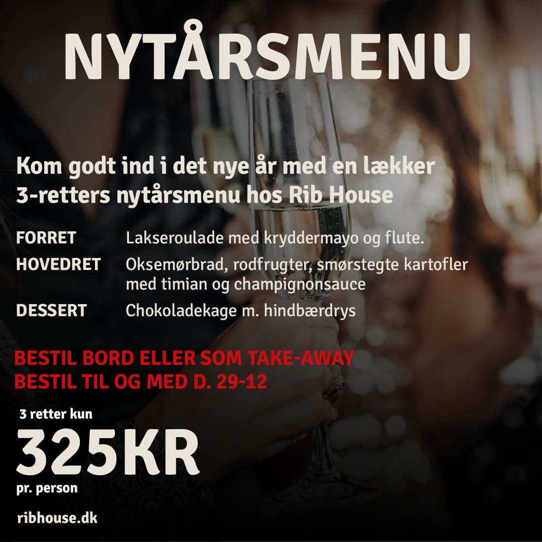 Gør årets sidste aften ekstra festlig med Rib House’ lækre 3-retters nytårsmenu – skabt til dig, der vil nyde god mad uden stress og forberedelser. Vores kokke har sammensat en menu, hvor kvalitet, smag og hygge går hånd i hånd, så du kan fokusere på det vigtigste: at fejre nytåret med dem, du holder af.